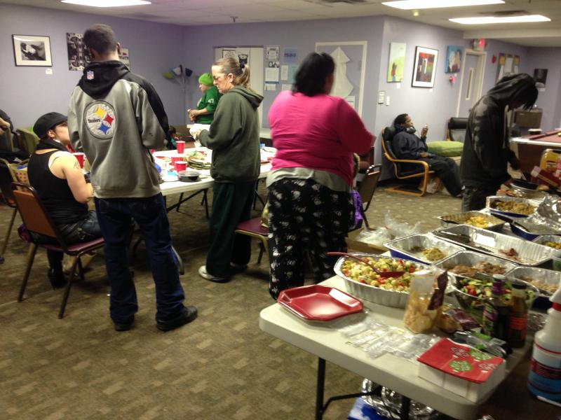 Service Access for Youth (SAY) is where I spend a majority of my time. Every day the center opens at 12 noon and the young people start streaming in. Besides myself, my team consists of social work interns from the University of Pittsburgh’s School of Social Work, a nurse and nurse practitioner from Healthcare for the Homeless, a volunteer for the Gay and Lesbian Community Center (where the program is held), volunteers from Homeless Children’s Education Fund, and other people from various organizations who are asked to come and provide various services that we are not able to give, such as legal help, art therapy, and resourcing by the Department of Human Services. In general, we provide a safe space where young people can come and hang out, get a hot meal, and get hooked up with services. As the AmeriCorps member, I enroll our clients in health insurance and public benefits, help them locate stable food sources, write a resume and search for appropriate jobs, assist them in the community closet to find hygiene products and clothing that fits them, and provide assistance finding stable housing or shelter.
